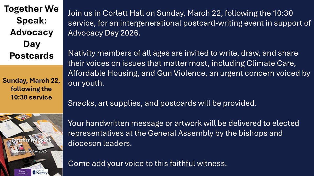 Together We Speak: Advocacy Day Postcards – Sunday, March 22, following the 10:30 service