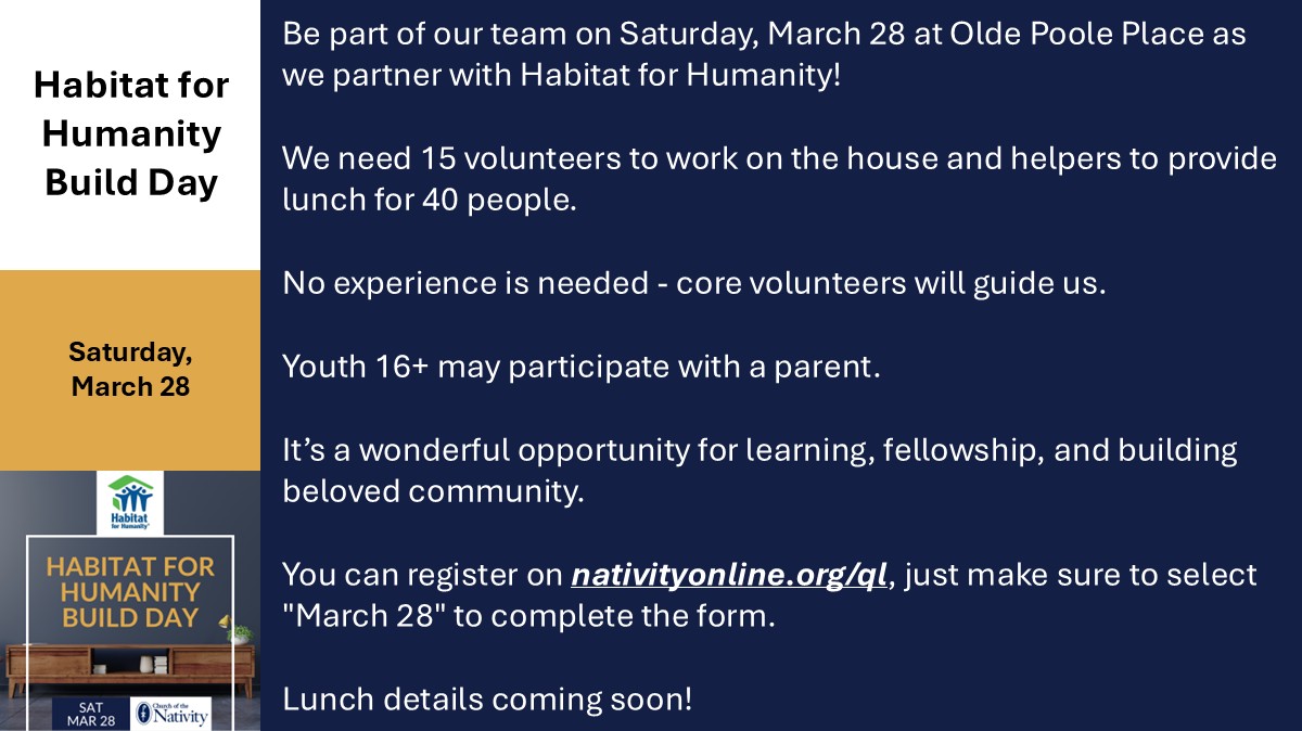 Be part of our team on Saturday, March 28 at Olde Poole Place as we partner with Habitat for Humanit…