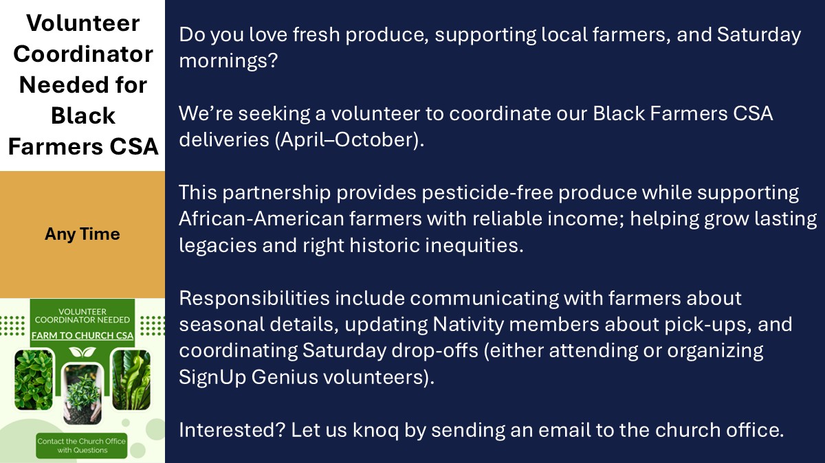 Volunteer Coordinator Needed for Black Farmers CSA